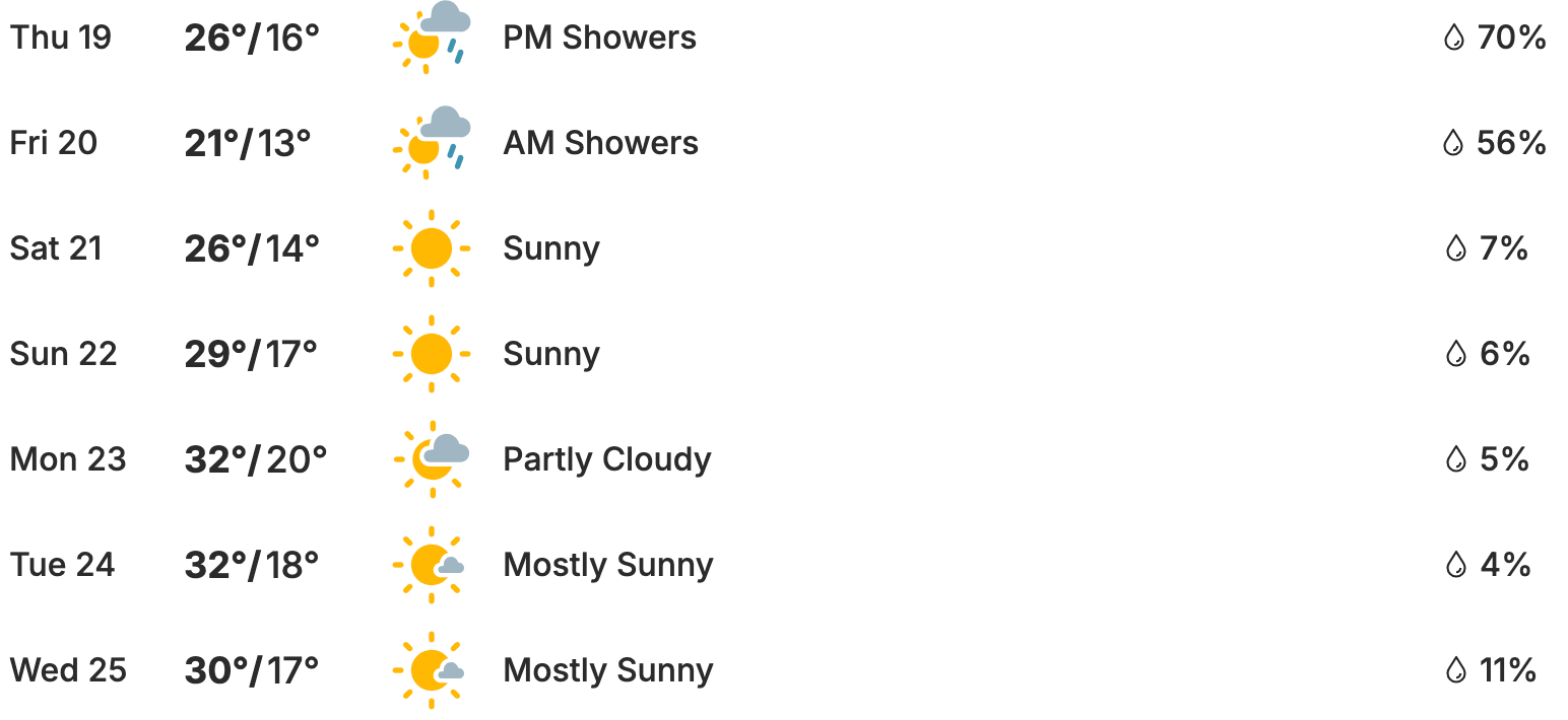 In short: push through the rainy start… the good stuff kicks in from Saturday 🌿🍷