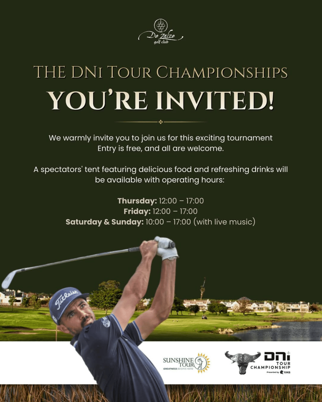 📅 Thu. - Sun. (Times vary) 📍 De Zalze Golf Club, Stellenbosch